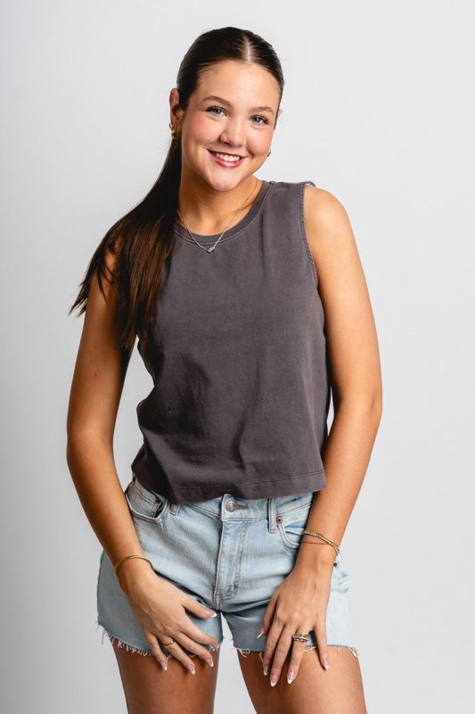 Acid wash crop tank top charcoal