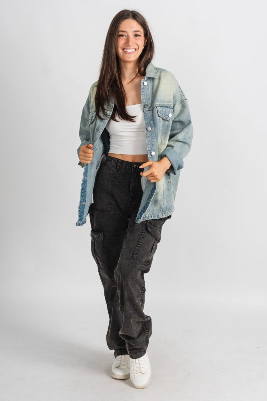Acid wash denim shacket medium denim