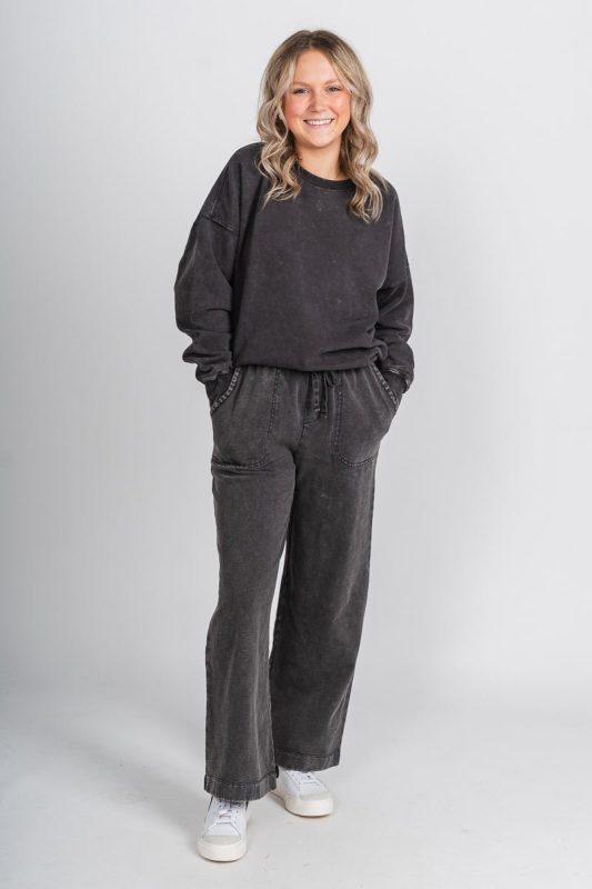 Acid wash sweatpants from Lush Fashion Lounge women's boutique in Oklahoma City.Lush boutique in OKC has a variety of cute loungewear and more! This a