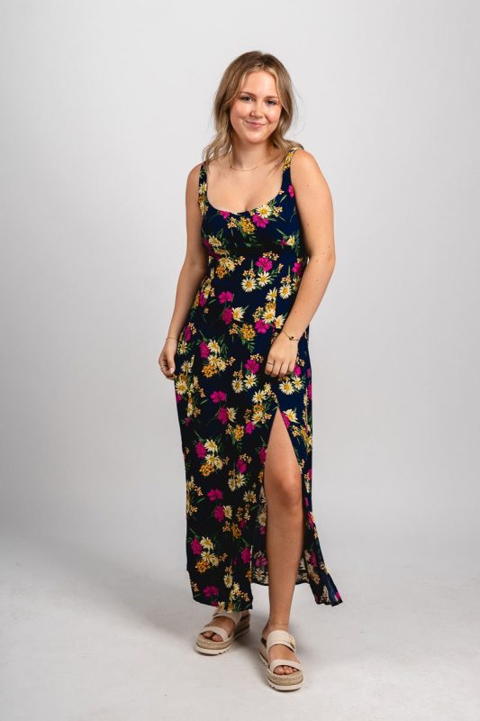 Paisley cami dress from Lush Fashion Lounge women's boutique in Oklahoma City.Lush boutique in OKC has a variety of cute dresses and more! Model is 5'