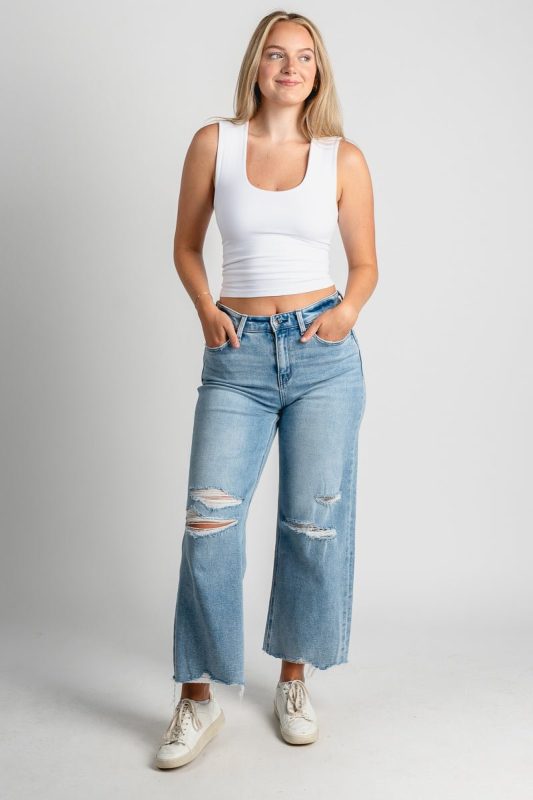 Acid wash crop tank top from Lush Fashion Lounge women's boutique in Oklahoma City.Lush boutique in OKC has a variety of cute tops and tank tops! This