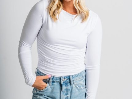 Ruched long sleeve top off white