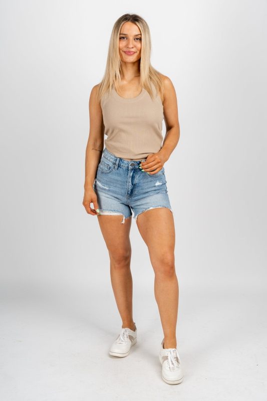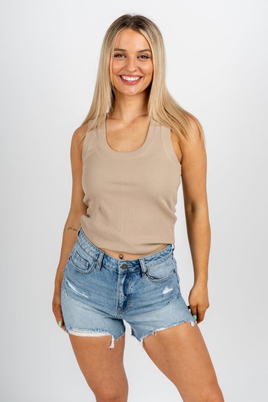 Knit tank top from Lush Fashion Lounge women's boutique in Oklahoma City.Lush boutique in OKC has a variety of cute tank tops and more! This basic tan