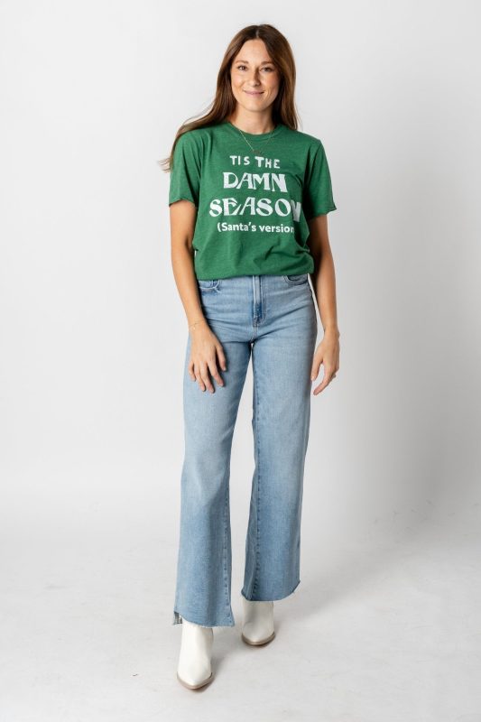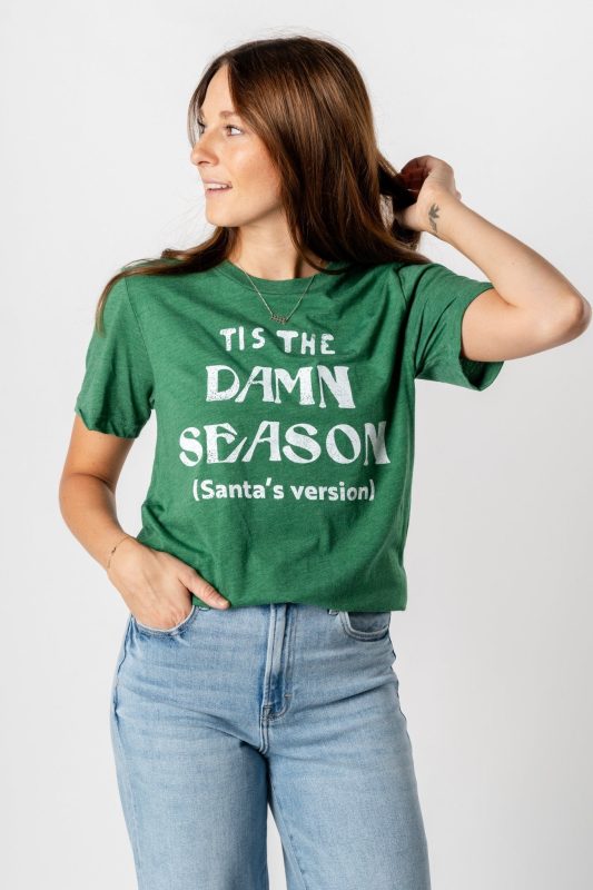 ‘Tis the damn season (Santa’s Version) t-shirt from Lush Fashion Lounge women’s boutique in Oklahoma City. Lush boutique in OKC is