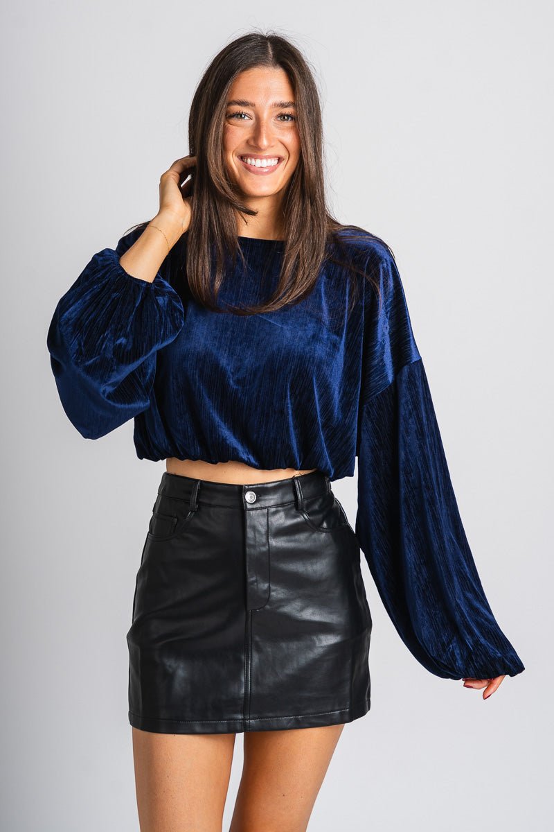 Velvet crop top navy