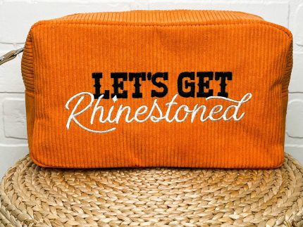 Let's get rhinestoned corduroy cosmetic bag from Lush Fashion Lounge women's boutique in Oklahoma City.Lush boutique in OKC has a variety of cute appa