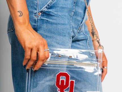 OU clear stadium bag from Lush Fashion Lounge boutique in Oklahoma City.Lush Fashion Lounge in Oklahoma City has a large selection of trendy Oklahoma