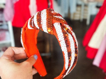 Orange and white striped sequin headband with a knot from Lush Fashion Lounge women's boutique in Oklahoma City.Lush boutique in OKC has a variety of