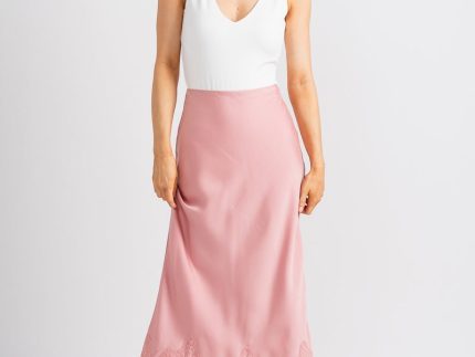 Satin lace midi skirt blush