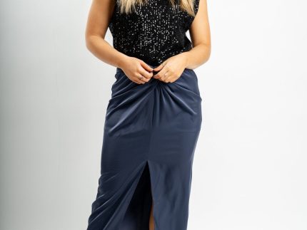 Twist waist midi skirt navy