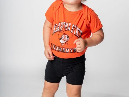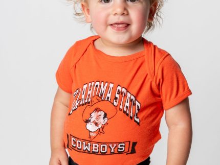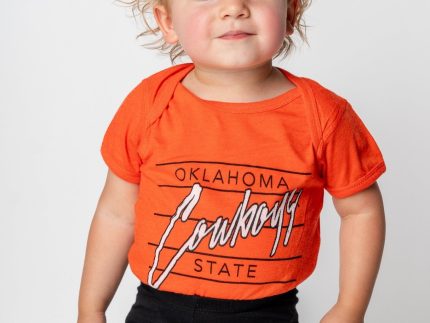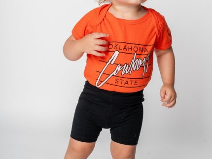 Kids OSU Pokes player onesie from Lush Fashion Lounge women's boutique in Oklahoma City.Lush boutique in Oklahoma is known for a large selection of OS