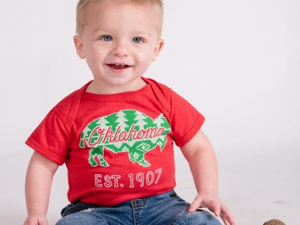 KIDS Oklahoma tree bison onesie redYour little one is sure to be the cutest little festive baby this Holiday season