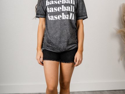Baseball acid wash t-shirt from Lush Fashion Lounge women's boutique in Oklahoma City. This trendy baseball t-shirt is perfect for any baseball fan! E