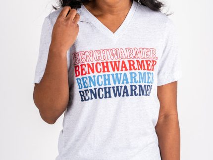 Benchwarmer unisex short sleeve v-neck t-shirt white fleck.This trendy graphic t-shirt is perfect for any baseball fan!50% polyester 25% cotton
