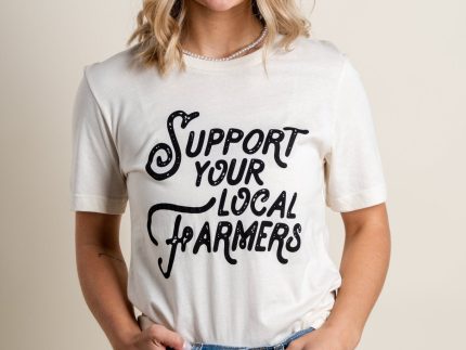 Support local farmers t-shirt from Lush Fashion Lounge women's boutique in Oklahoma City.Lush boutique in OKC has a variety of cute t-shirts and more!