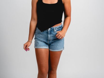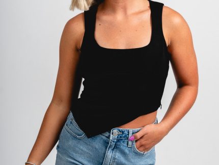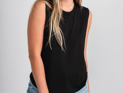 Black tank top with asymmetrical hem line from Lush Fashion Lounge women's boutique in Oklahoma City.Lush boutique in OKC has a variety of cute tank t