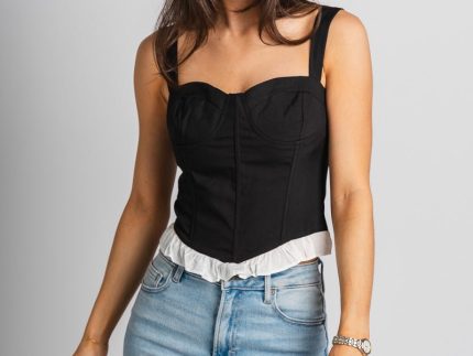 Ruffle corset top from Lush Fashion Lounge women's boutique in Oklahoma City.Lush boutique in OKC has a variety of cute tops and more! This trendy cor