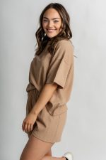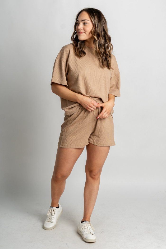Lush boutique in OKC has a variety of cute shorts and more! Pair these trendy textured shorts with the matching textured short sleeve top, SOLD SEPARATELY, for a cute, cozy, and comfortable look! We are loving this matching set for Spring!