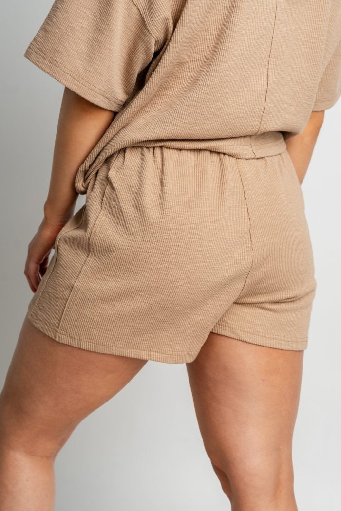 Amaya textured elastic waist shorts from Lush Fashion Lounge women’s boutique in Oklahoma City.Lush boutique in OKC has a variety of cute shorts and m
