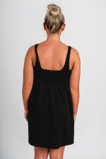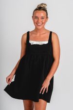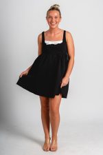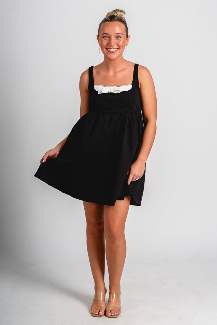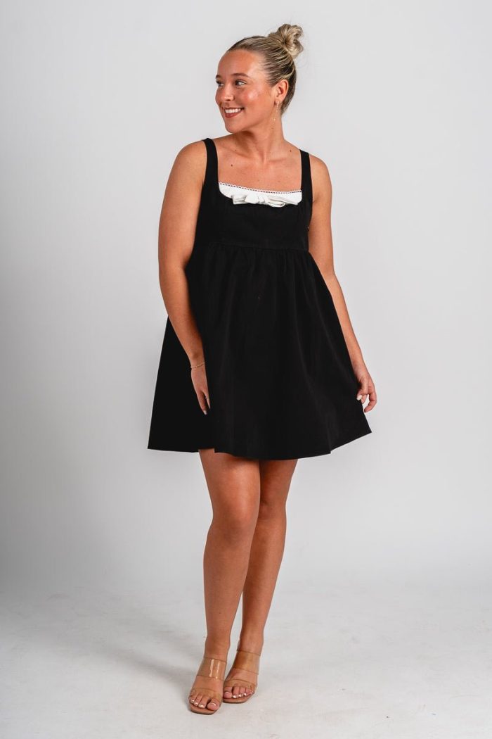 Bow babydoll mini dress black