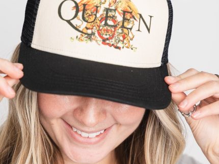 Queen sinclair trucker hat from Lush Fashion Lounge women's boutique in Oklahoma City.Lush boutique in OKC has a variety of trucker hats, retro trucke