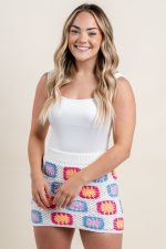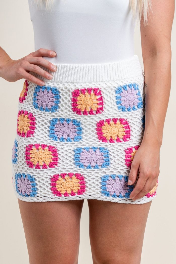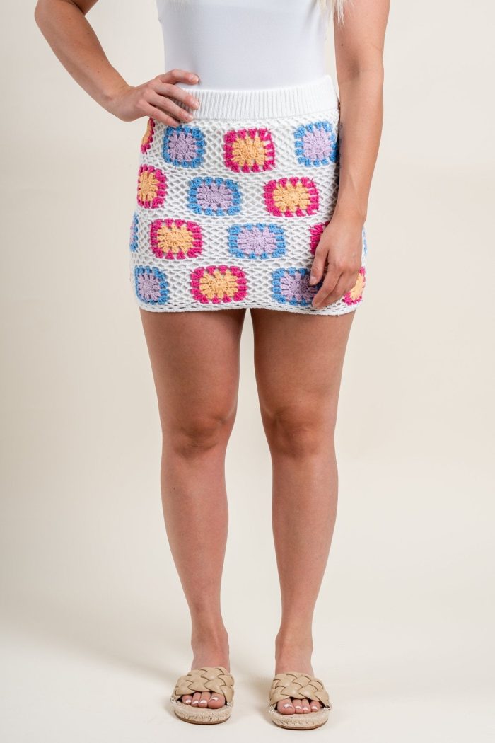 Crochet knit mini skirt from Lush Fashion Lounge women’s boutique in Oklahoma City.