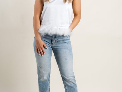 Feather trim cami tank top ivory