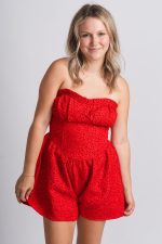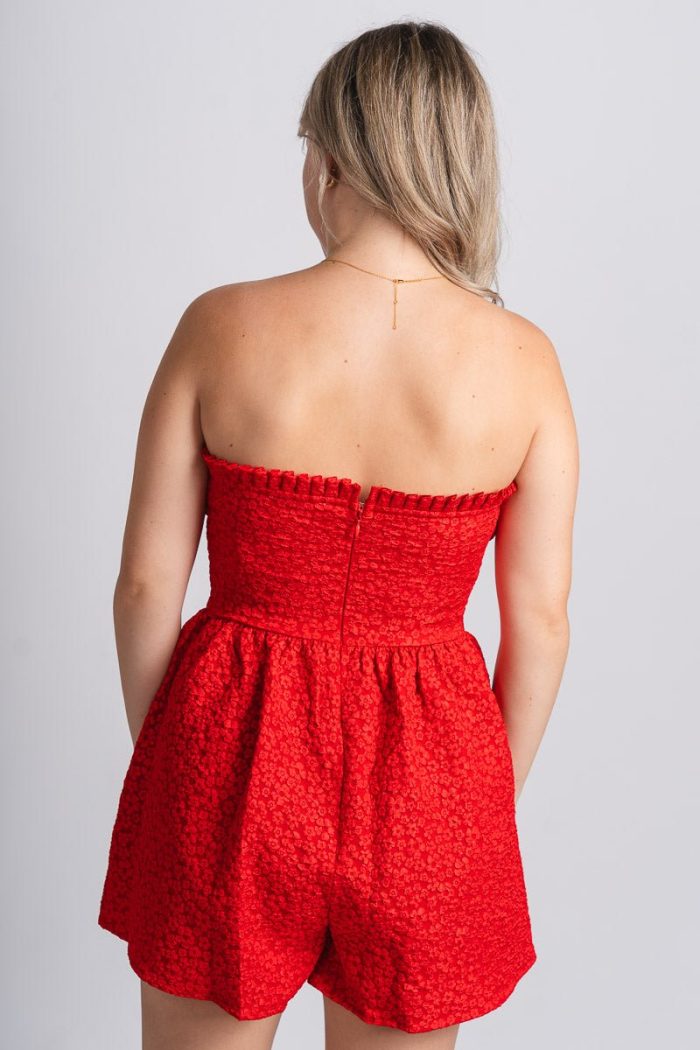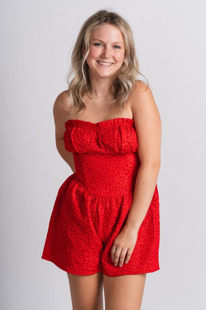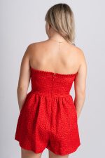 Crochet strapless romper from Lush Fashion Lounge women’s boutique in Oklahoma City.Lush boutique in OKC has a variety of cute