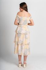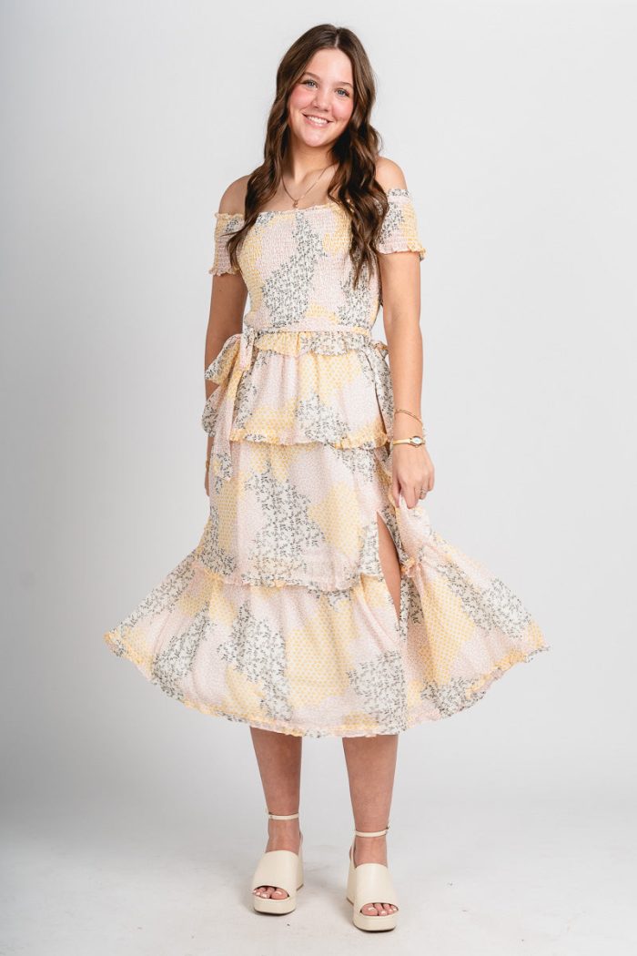 Floral smocked midi dress from Lush Fashion Lounge women’s boutique in Oklahoma City.