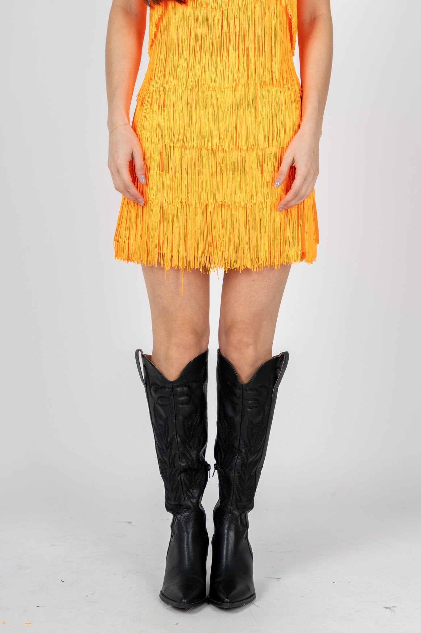 Lush boutique in OKC has a variety of cute gameday apparel and more! Pair this fringe skirt with the matching fringe tank top, sold separately, and cowboy boots for a trendy gameday look!