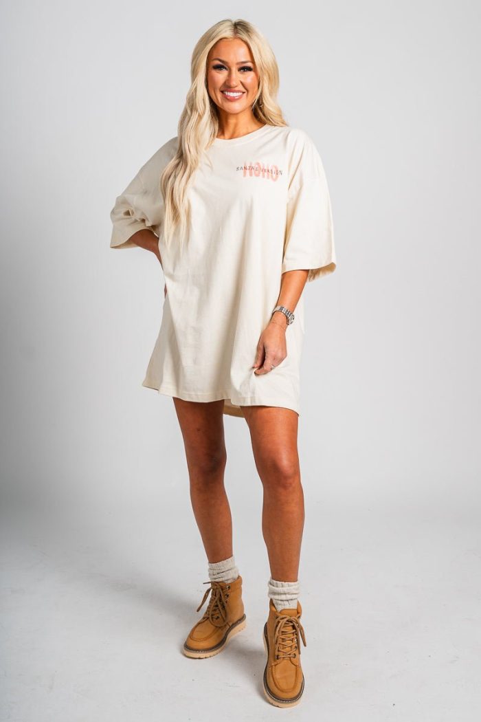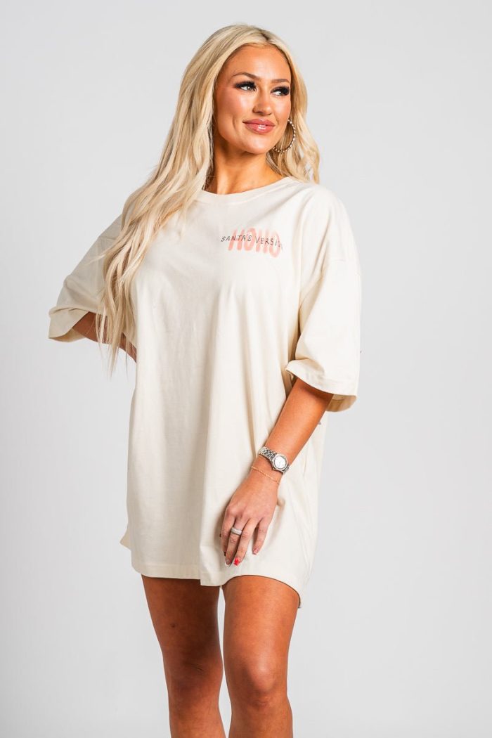 Ho Ho Ho Santa’s version oversized t-shirt from Lush Fashion Lounge women’s boutique in Oklahoma City.