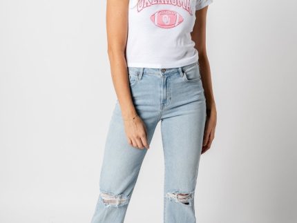 OU Wonka football micro cropped t-shirt from Lush Fashion Lounge women's boutique in Oklahoma City. Lush boutique in Oklahoma is known for a large sel