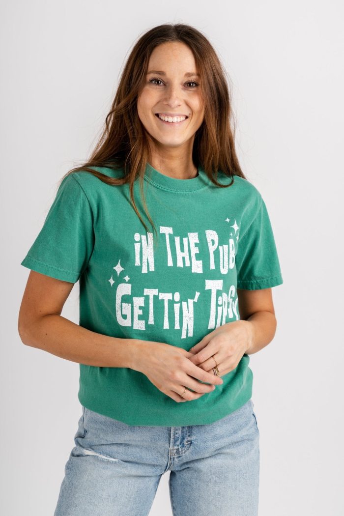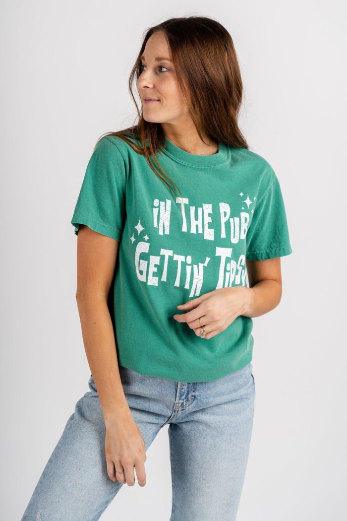 In the pub getting tipsy t-shirt from Lush Fashion Lounge women’s boutique in Oklahoma City.
