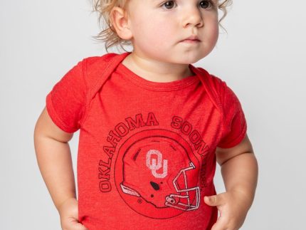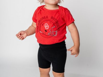 Kids OU Sooners players onesie from Lush Fashion Lounge women's boutique in Oklahoma City.Lush boutique in Oklahoma is known for a large selection of