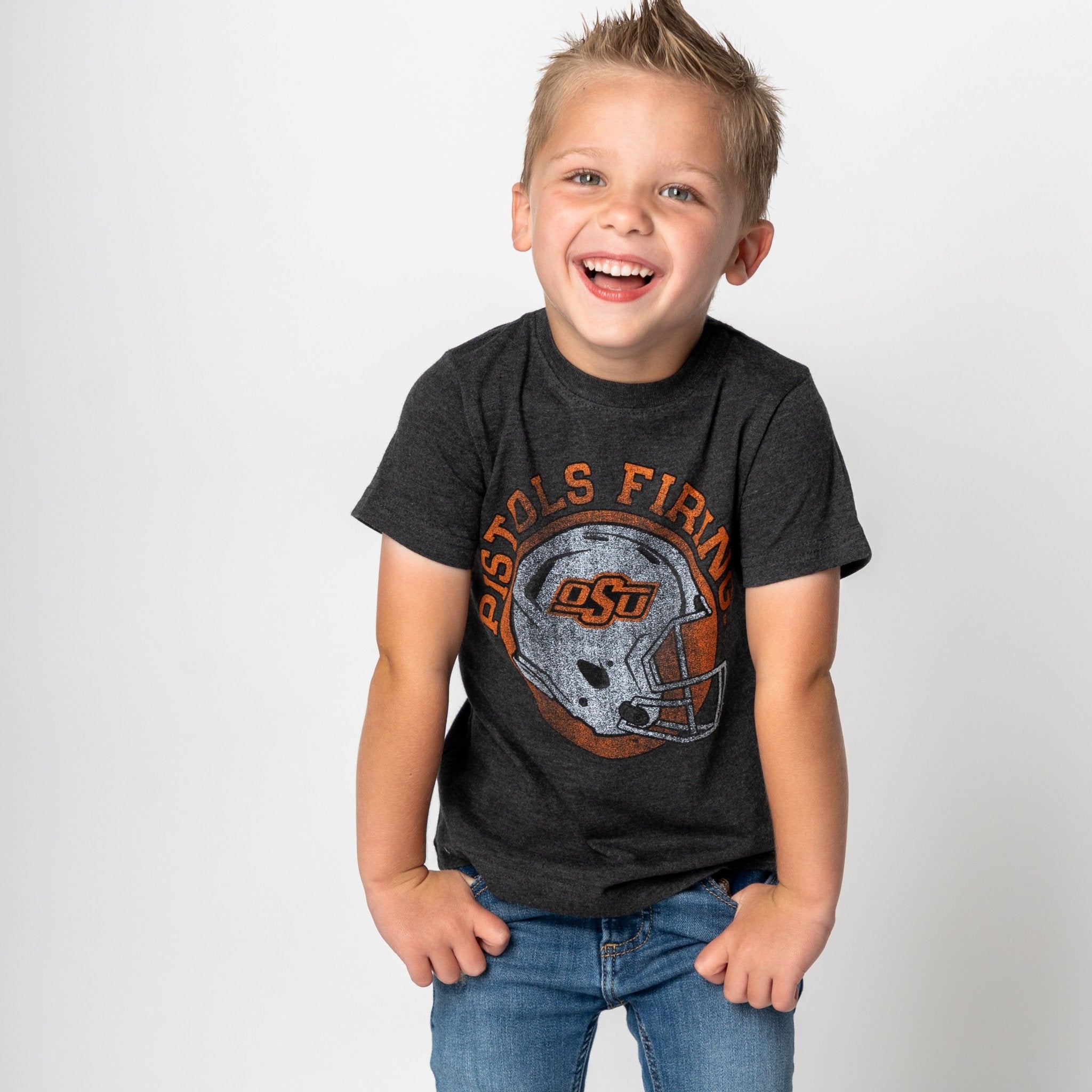 Kids OSU helmet circle t-shirt from Lush Fashion Lounge women’s boutique in Oklahoma City.Â