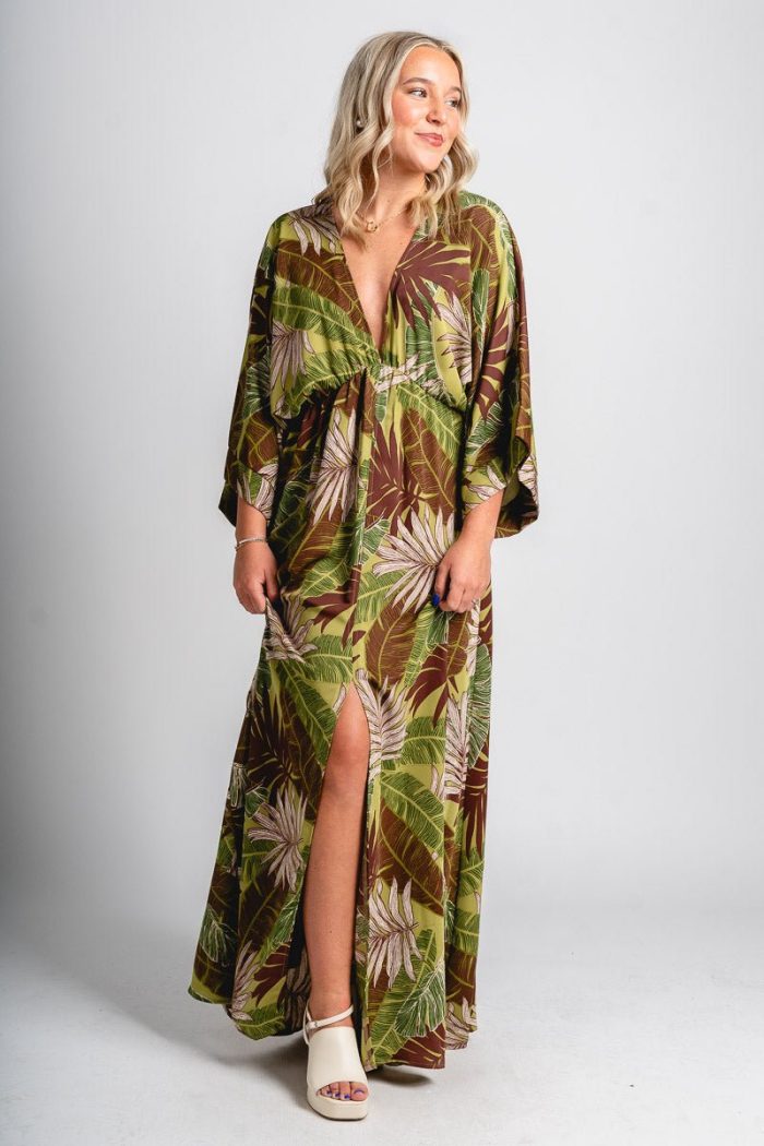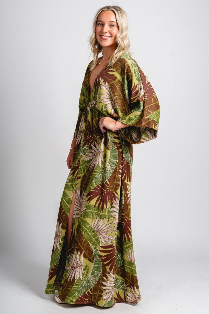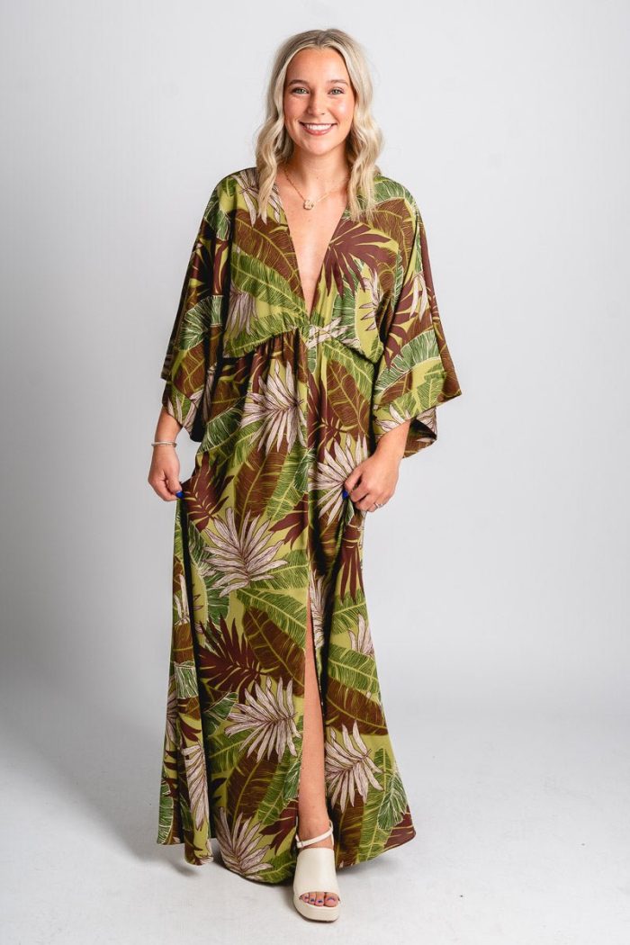Kimono maxi dress from Lush Fashion Lounge women’s boutique in Oklahoma City.Lush boutique in OKC has a variety of cute dresses and more! The perfect