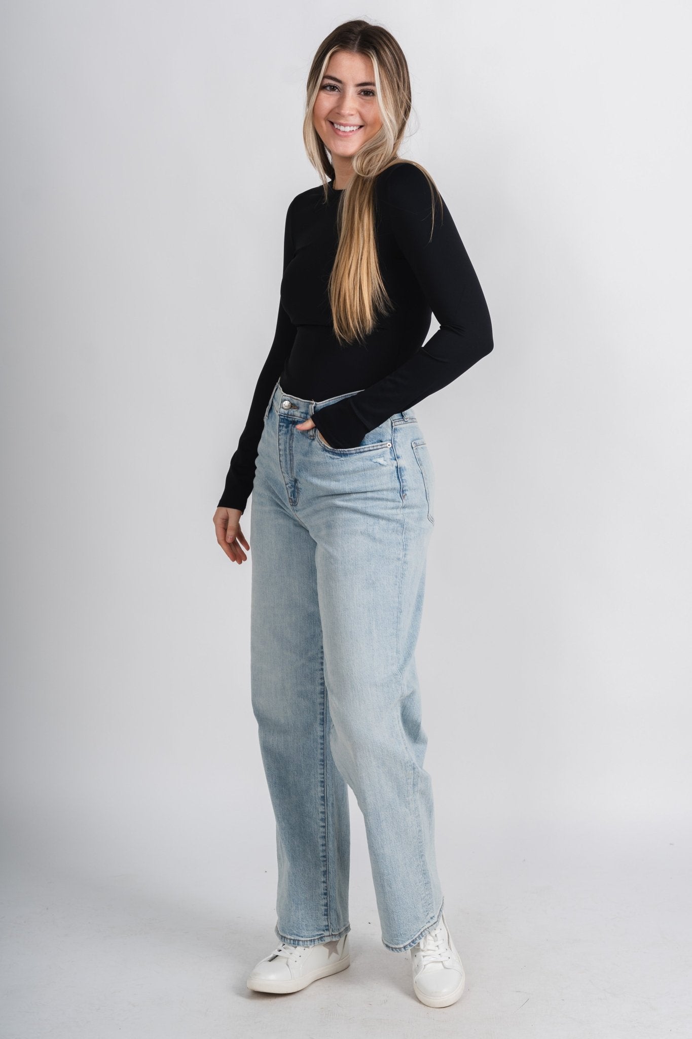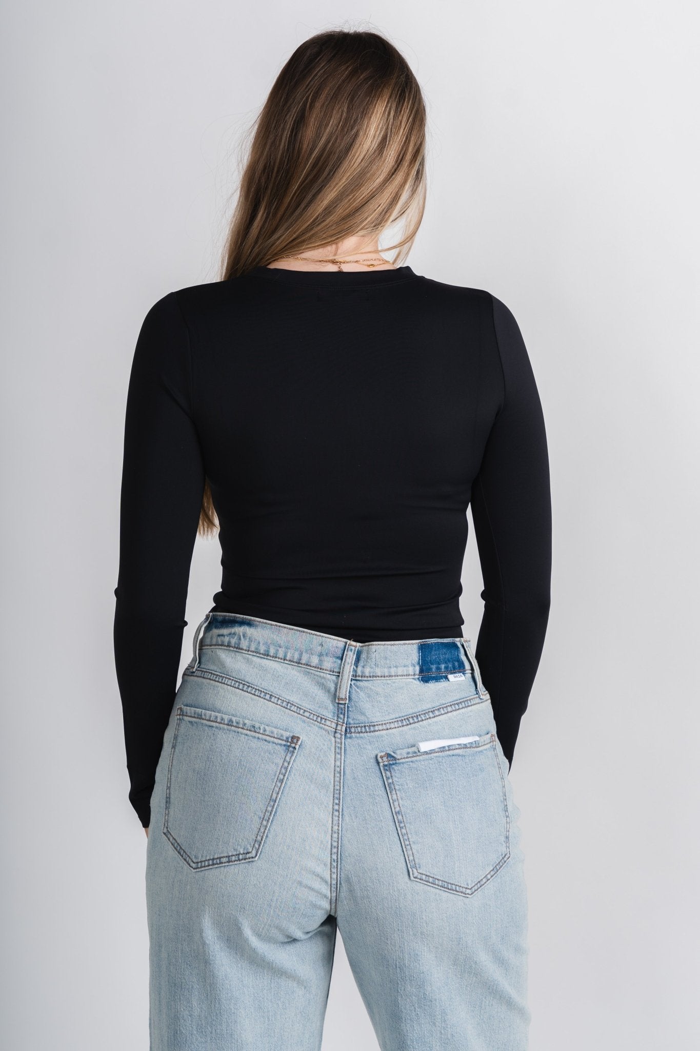Long sleeve scuba bodysuit from Lush Fashion Lounge women’s boutique in Oklahoma City.Lush boutique in OKC has a variety of cute bodysuits! This easy
