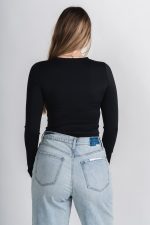 Long sleeve scuba bodysuit from Lush Fashion Lounge women’s boutique in Oklahoma City.