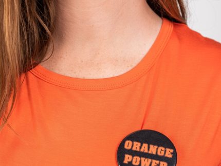 Orange Power 2.5 inch button.If you’re searching for trendy gameday buttons for tailgating Lush Fashion Lounge in OKC has them!We