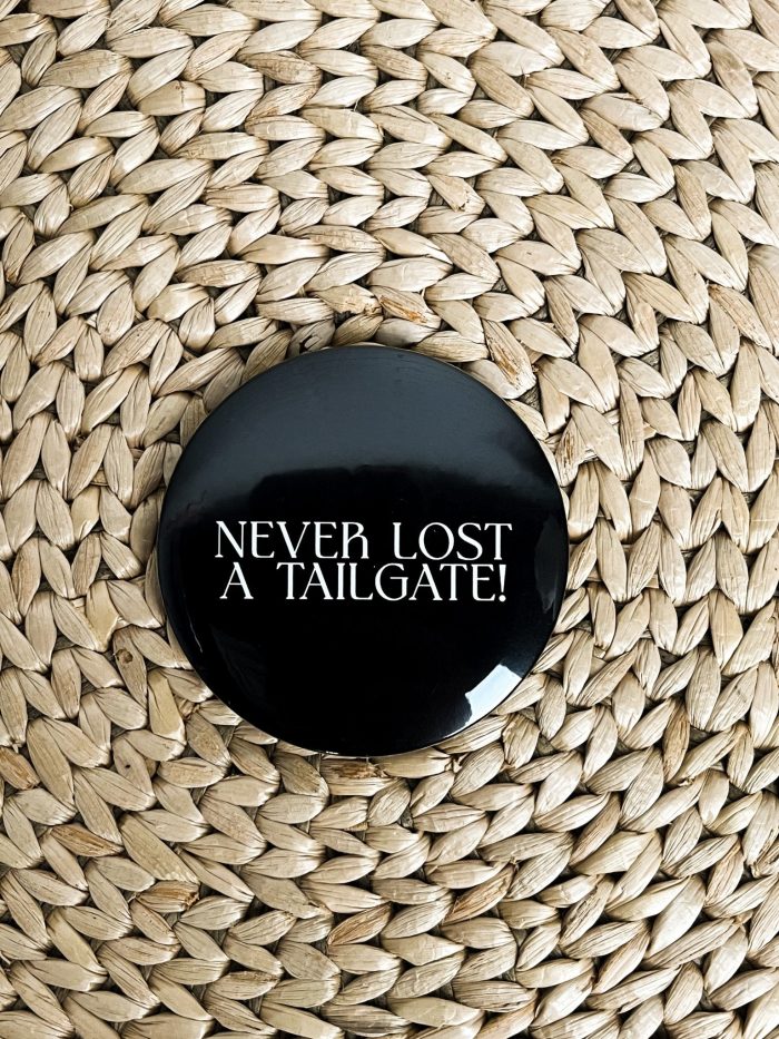 Never lost a tailgate game day button from Lush Fashion Lounge women’s boutique in Oklahoma City.Lush boutique in OKC has a variety of cute gameday ac
