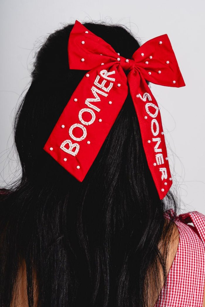 Be the first to review “OU Boomer Sooner pearl hair bow crimson” Cancel reply