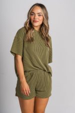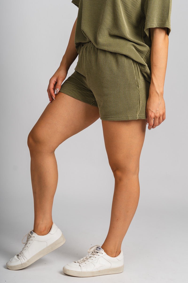 Ribbed knit shorts from Lush Fashion Lounge women’s boutique in Oklahoma City.Lush boutique in OKC has a variety of cute matching sets and more! This