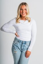 Ruched long sleeve top from Lush Fashion Lounge women’s boutique in Oklahoma City.
