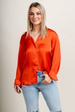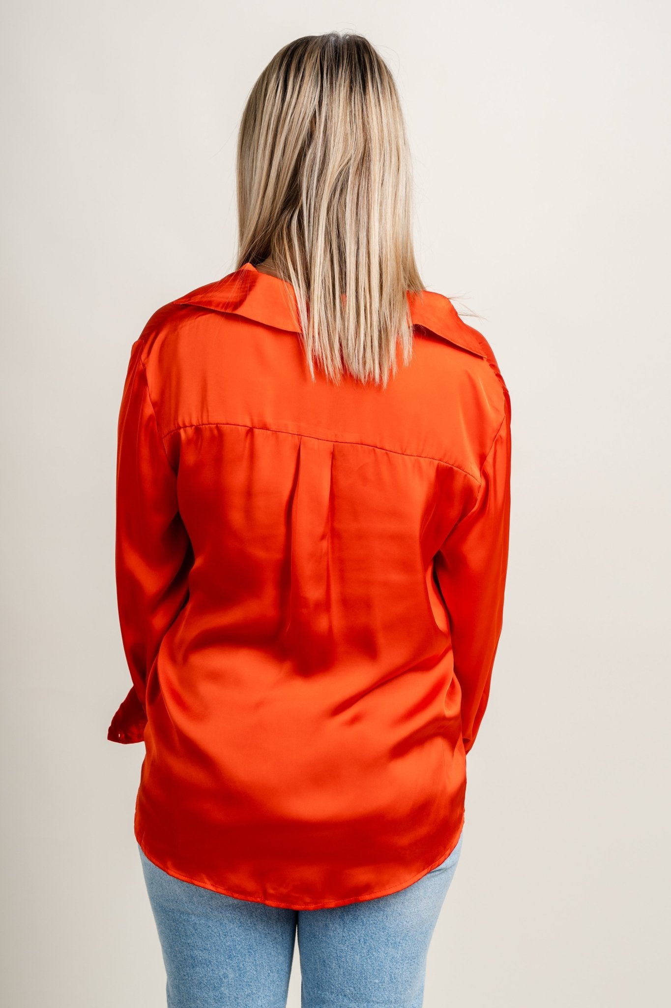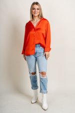 Satin button down top from Lush Fashion Lounge women’s boutique in Oklahoma City.Lush boutique in OKC has a variety of cute tops and more! This button