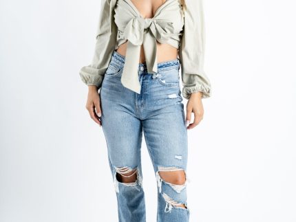 Front ribbon tie top dusty olive