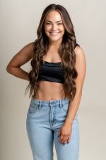 Ruched knit crop tank top black