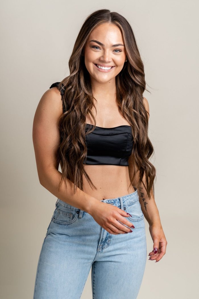 Satin crop top from Lush Fashion Lounge women’s boutique in Oklahoma City.