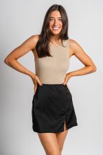 Knit mini skirt from Lush Fashion Lounge women's boutique in Oklahoma City.Lush boutique in OKC has a variety of cute skirts and more! This skirt pair