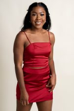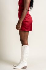 Satin mini skirt from Lush Fashion Lounge women’s boutique in Oklahoma City.