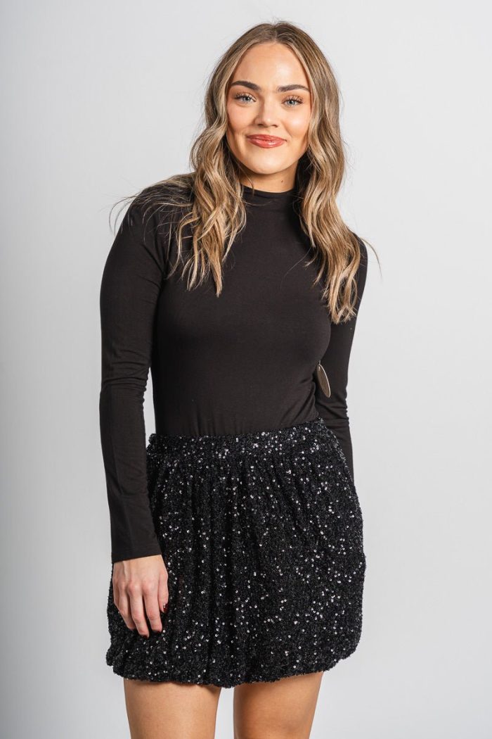 Sequin balloon skirt from Lush Fashion Lounge women’s boutique in Oklahoma City.Lush boutique in OKC has a variety of cute New Year’s Eve apparel and